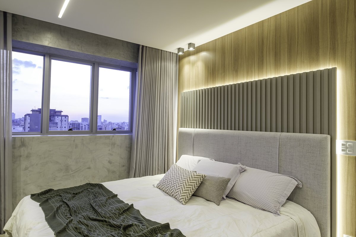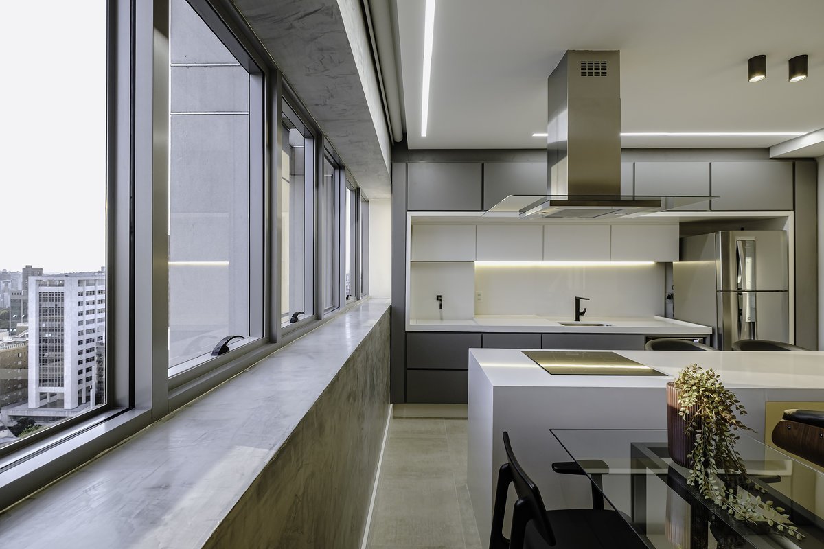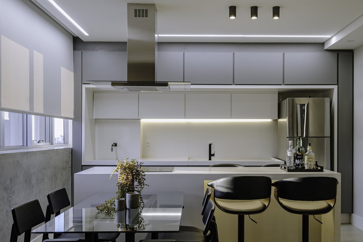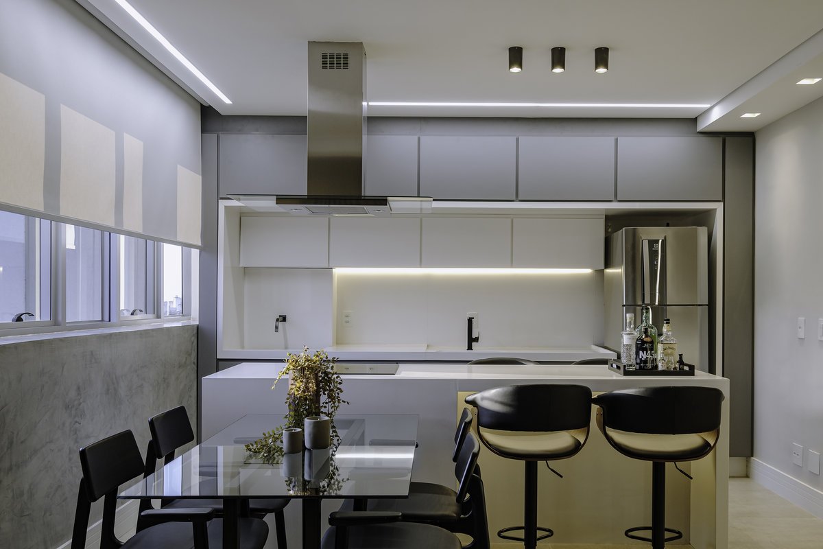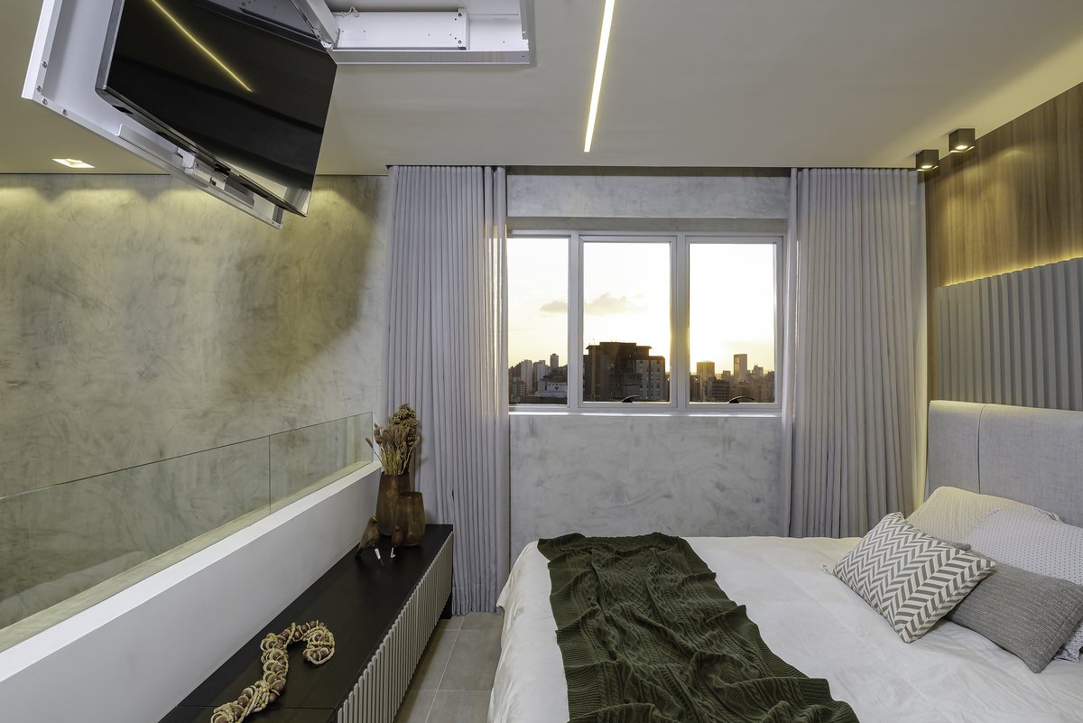 O conceito partiu do minimalismo, trazendo ambientes limpos, funcionais e com design contemporâneo. Mas, ao mesmo tempo, pensamos cuidadosamente no aconchego, porque, depois de uma rotina intensa de trabalho, ele queria chegar em casa e encontrar um verdadeiro refúgio.