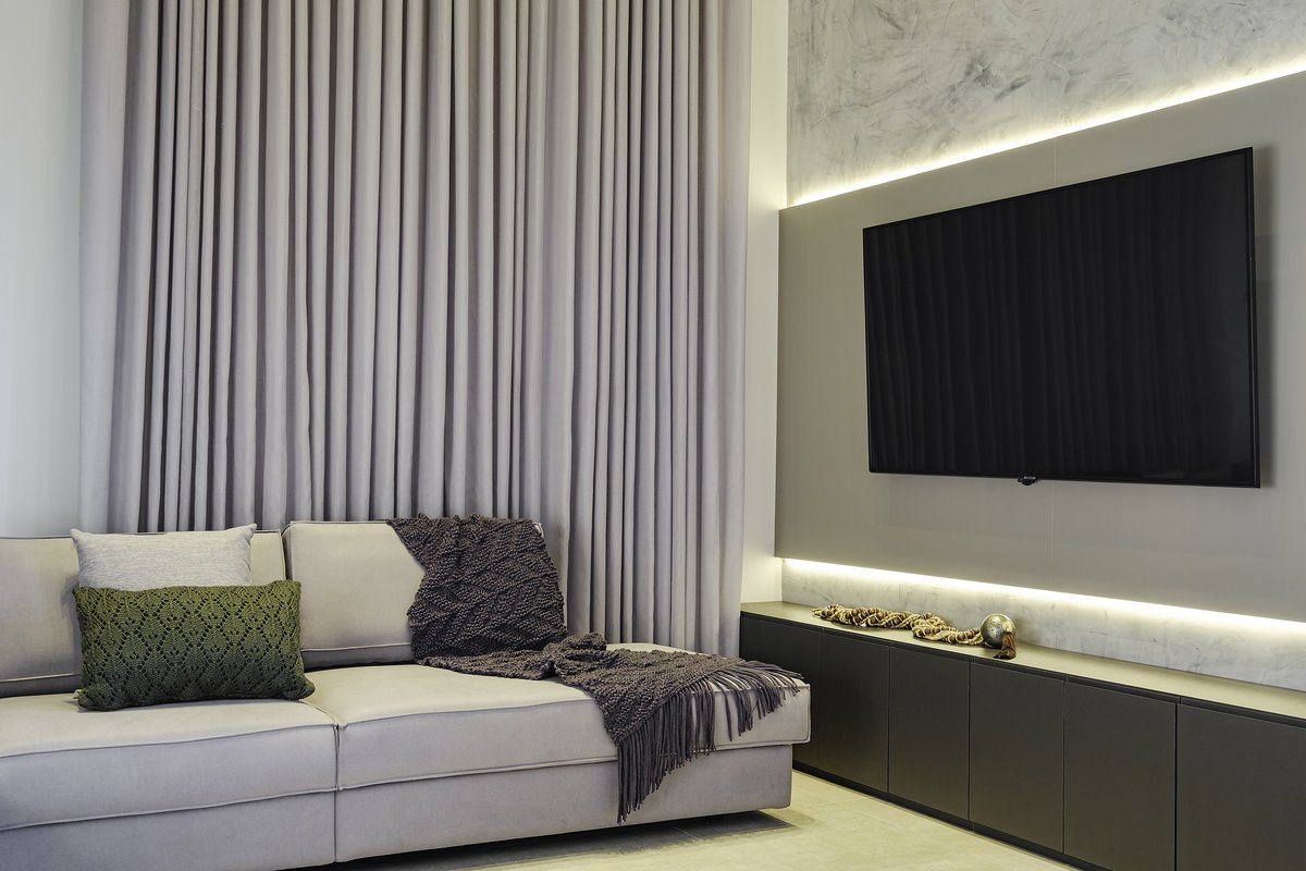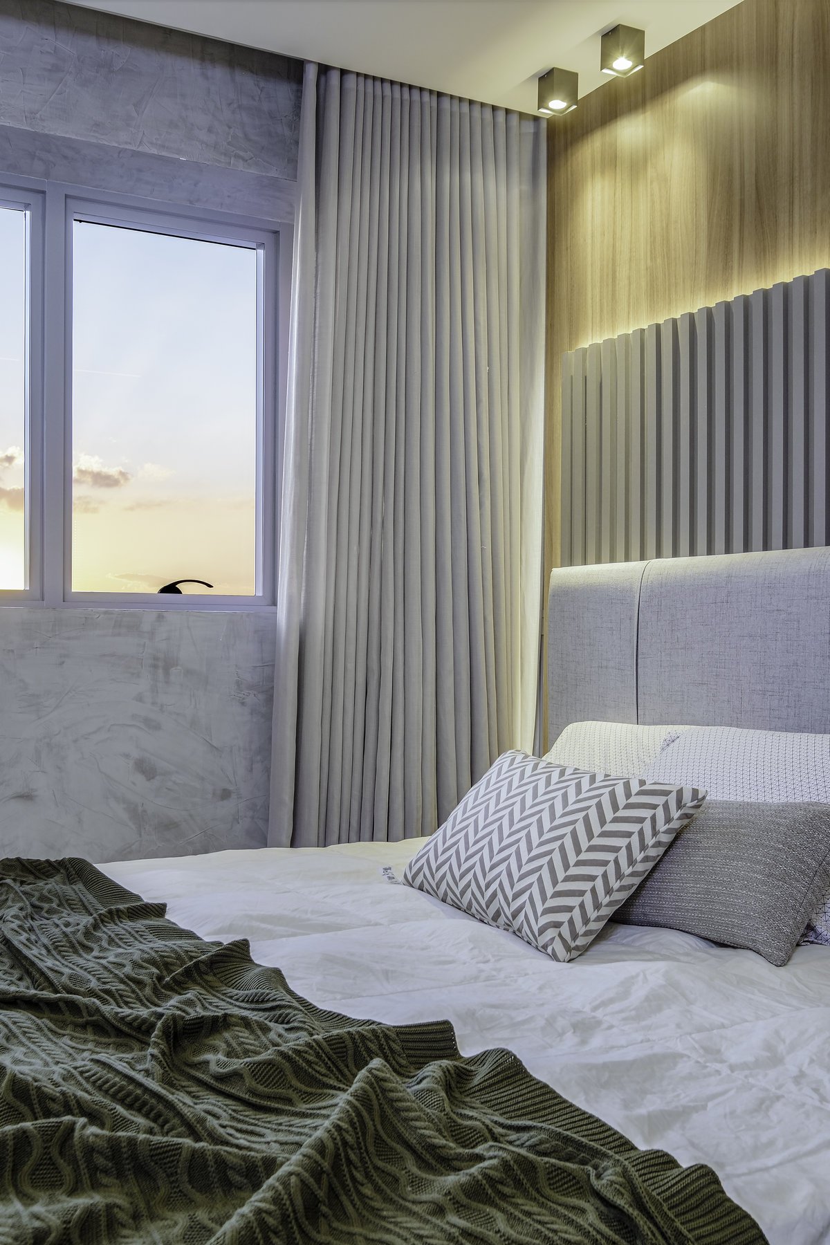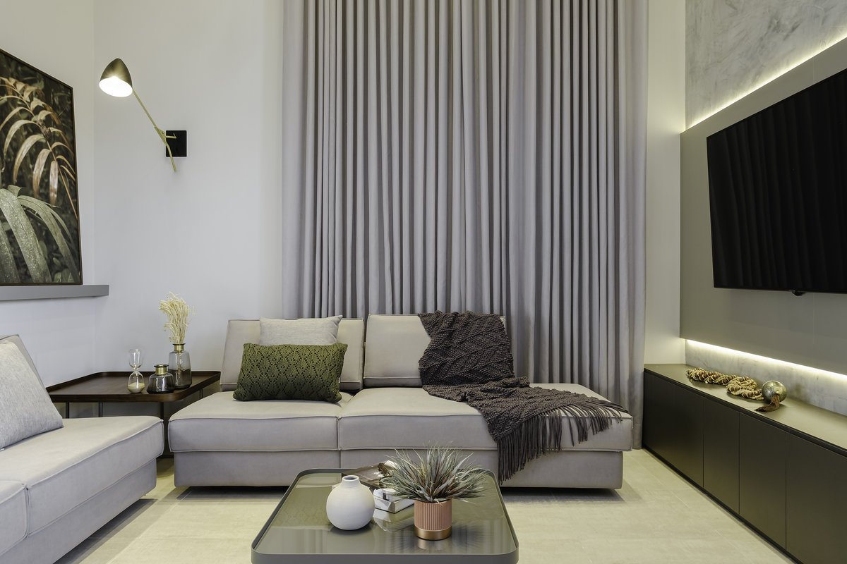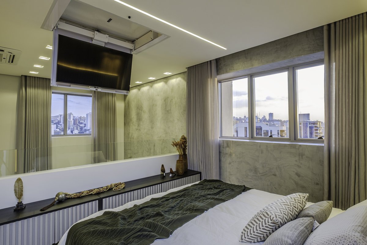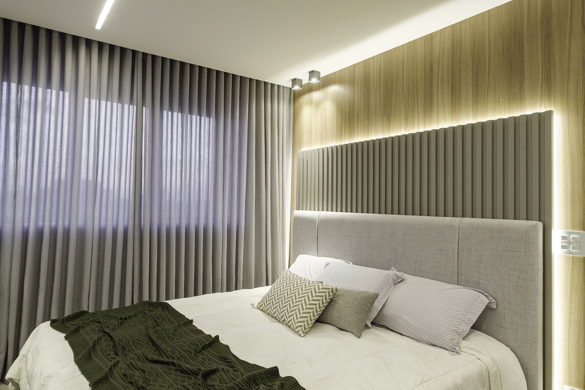 O conceito partiu do minimalismo, trazendo ambientes limpos, funcionais e com design contemporâneo. Mas, ao mesmo tempo, pensamos cuidadosamente no aconchego, porque, depois de uma rotina intensa de trabalho, ele queria chegar em casa e encontrar um verdadeiro refúgio.